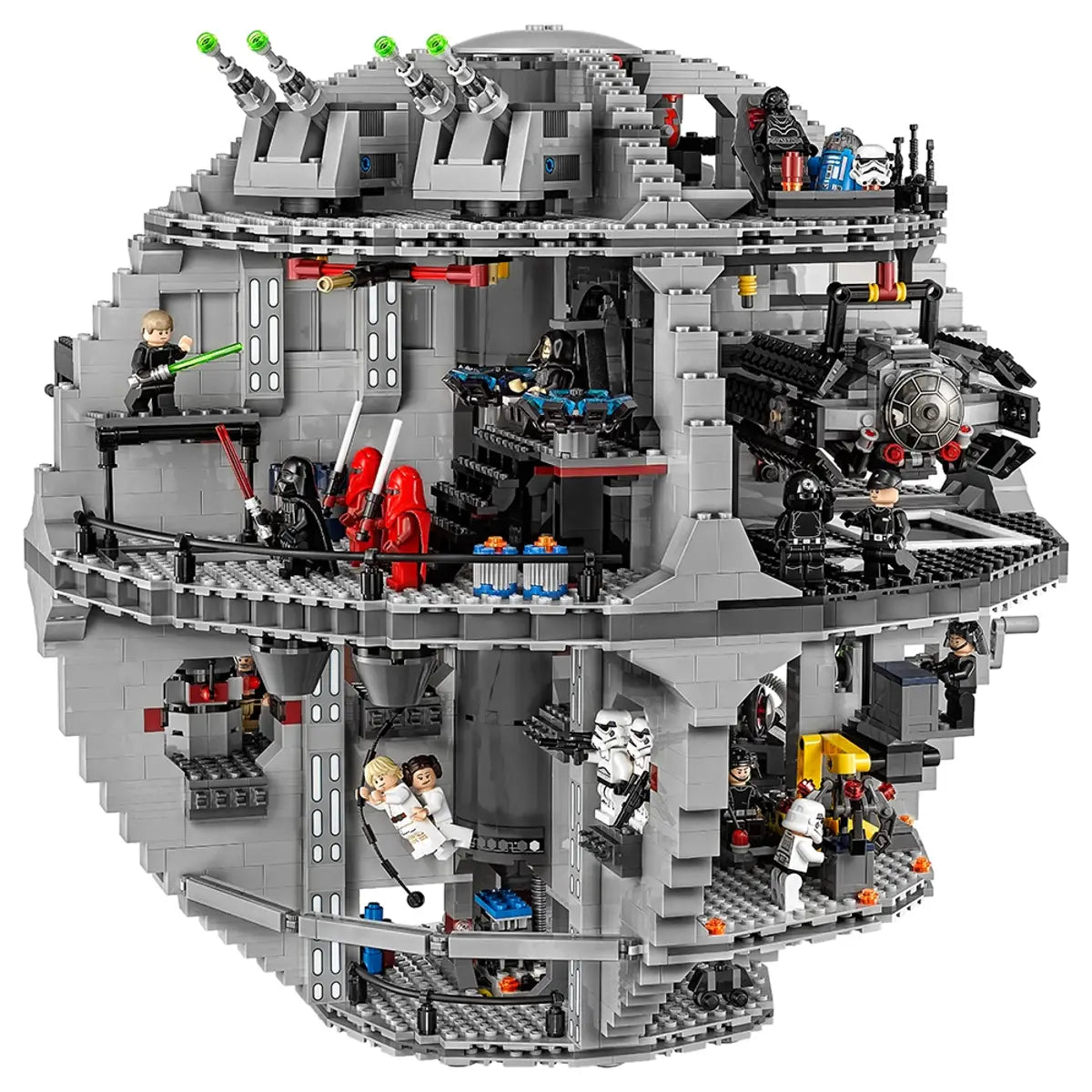 Reenact amazing scenes from the Star Wars saga with the Empire’s ultimate planet-zapping weapon—the Death Star! With over 4,000 pieces, this fantastic model has a galaxy of intricate and authentic environments, including a superlaser control room, Imperial conference chamber, hangar bay with moving launch rack and Lord Vader’s TIE Advanced with space for Vader inside, Emperor Palpatine’s throne room, Droid maintenance room, detention block, trash compactor, tractor beam, cargo area, turbo laser with spring-loaded shooters and seats for the 2 Death Star Gunners, and 2 movable turbo laser towers. This fantastic set also includes 23 iconic minifigures and 2 Droids to ensure hours of Star Wars battle fun.